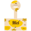 Ce format d’étiquette s’adapte aux pots de formes rondes et hexagonales. L’étiquette s’adapte aussi bien aux pots de miel de 350g que 500g.