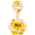 Ce format d’étiquette s’adapte aux pots de formes rondes et hexagonales. L’étiquette s’adapte aussi bien aux pots de miel de 350g que 500g.