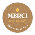 Cette étiquette est parfaite pour ajouter des informations supplémentaires ou des mentions obligatoires sur des pots de petite taille. Vous pouvez coller les étiquettes complémentaires de 30mm sur le couvercle ou au dos de votre pot de miel.