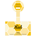 Ce format d’étiquette s’adapte aux pots de formes rondes et hexagonales. L’étiquette s’adapte aussi bien aux pots de miel de 350g que 500g.