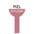 Ce format d’étiquette s’adapte aux pots de formes rondes et hexagonales. L’étiquette s’adapte aussi bien aux pots de miel de 250g, 350g que 500g.