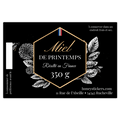 Ce format d’étiquette s’adapte aux pots de formes rondes et hexagonales. L’étiquette s’adapte aussi bien aux pots de miel de 350g que 500g.
