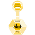 Ce format d’étiquette s’adapte aux pots de formes rondes et hexagonales. L’étiquette s’adapte aussi bien aux pots de miel de 350g que 500g.